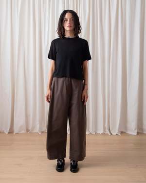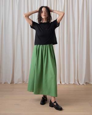 Boxy and slightly cropped knitted lightweight t-shirt in soft Tencel/Cashmere yarn. CONTENT & CARE: 90% Tencel Lyocell, 10% Cashmere Dry clean -or- wash cold and lay flat to dry