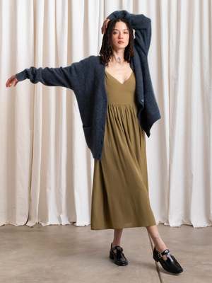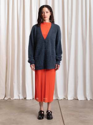 Oversized cardigan V-neck sweater in the softest Mohair yarn blend. CONTENT & CARE: 33% Mohair, 33% Wool, 28% Nylon, 6% Spandex Dry clean MEASUREMENTS (laying flat): XS/S - Chest: 24.5, Length (Shoulder to hem): 28, Shoulder to Shoulder: 22" XS/S - Chest: 27, Length (Shoulder to hem): 29, Shoulder to Shoulder: 24"
