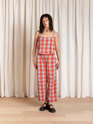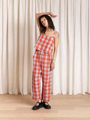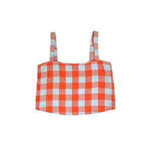 Cropped tank with thick adjustable straps that buttons up the back. CONTENT & CARE: 100% Silk Noil Dry clean or wash cold and lay flat or hang dry (fabric texture and look may change). MEASUREMENTS: XS - Bust: 37", Length (from shoulder): 18" S - Bust: 38", Length (from shoulder): 18" M - Bust: 40", Length (from shoulder): 19" L - Bust: 42", Length (from shoulder): 19" XL - Bust: 45", Length (from shoulder): 20"