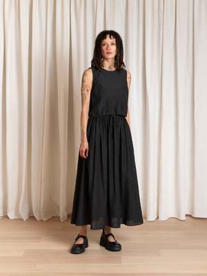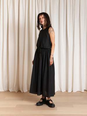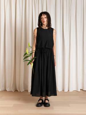 Crew neck tank with button-back keyhole closure and drawstring at the waist. CONTENT & CARE: 35% Rayon, 32% Cotton, 14% Linen, 19% Nylon Dry clean or hand wash cold and hang or lay flat to dry. MEASUREMENTS (laying flat): XS - Chest: 18", Length: 18" S - Chest: 19", Length: 18.5" M - Chest: 20", Length: 19" L - Chest: 21.5", Length: 20"