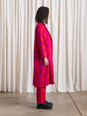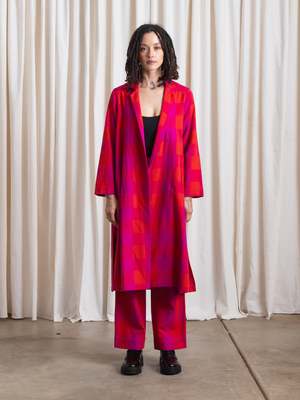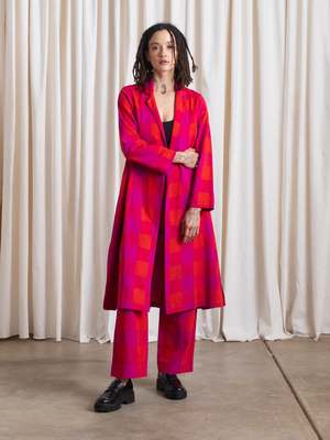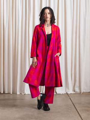 Raw silk notch collar jacket with side seam pockets, side-slits at hem and option to roll sleeves. Fitted at underarm and becomes fuller towards hem. Great for layering. Made with love in a Fair Trade Certified facility in India. CONTENT & CARE: 100% Raw Silk Dry clean MEASUREMENTS: XS - Shoulder to Shoulder (front): 14, Length 40" S - Shoulder to Shoulder (front): 14.5", Length : 41 M - Shoulder to Shoulder (front): 15", Length: 42 L - Shoulder to Shoulder (front): 15.5", Length: 43" XL - Shoulder to Shoulder (front): 16", Length: 44"