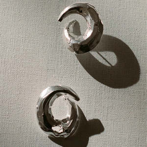 The Rebirth Earrings are cast in 100% recycled Sterling Silver. They belong to 'Votive Offerings' collectsion, a collectsion of ritualistic objects, inspired by the spiritual practices of ancient and modern civilisations. As Alighieri comes into its tenth year, this collectsion, for me, is an offering to the future. After a very difficult personal time last year, Votive Offerings is all about hope and rebirth - Rosh Mahtani. 100% recycled Sterling Silver. Lenght: 2,7 cm. Width: 2,5 cm. Handmade in London. Please note, each pairs earrings is completely unique, so they may vary in shape and size. Due to hygiene reasons, earrings are non-refundable and cannot be exchanged. CARE: Do not to wear your Alighieri jewelry whilst showering, exercising or swimming. Avoid contact with oils, lotions or perfumes. Wipe clean with a soft cloth before putting it away in a cool dry place. Alighieri is a collectsion of jewellery inspired by Dante Alighieris Divine Comedy; each piece corresponds to one of the poets 100 poems. Founded by Rosh Matani in 2014 with the intention of creating "Modern heirlooms that celebrate the beauty of human imperfection", every piece is handcrafted in London's Hatton Garden by a family-run business through the process of lost-wax casting.