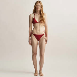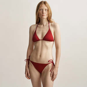 Alipo signature bikini top is a classic style with adjustable strings that can be tied around the neck or shoulders for a customizable fit. Made from recycled Italian performance nylon with high durability and elastic recovery, this two-way stretch textile maintains its shape over time using nylon yarn regenerated from pre- and post-consumer waste. The fabric is ultra-resistant to chlorine. Top and bottom are sold separately. This style fits true to size. Made in Portugal. 65% Recycled PA; 35% Elastane.