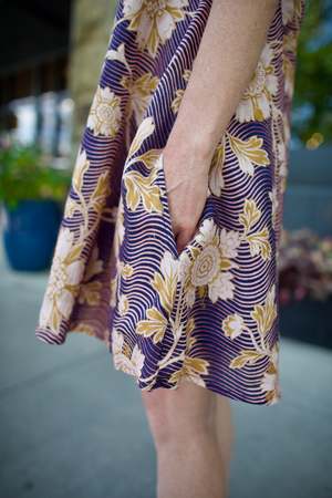 The Soleil Wavy Zinnia Dress by Alix Of Bohemia features a v neckline and flowy fit. Color: Blue Zinnia Fabrication: 100% Linen Fit Notes: True to size