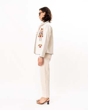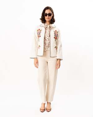 Elevate your wardrobe with the Francis Heirloom Flora Jacket. Perfect for layering over dresses, blouses, or casual basics, it transitions effortlessly from day to evening. The structured silhouette flatters the figure while the premium fabric ensures lasting comfort and durability. An investment piece that celebrates nature-inspired luxury and enduring style.