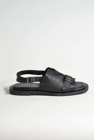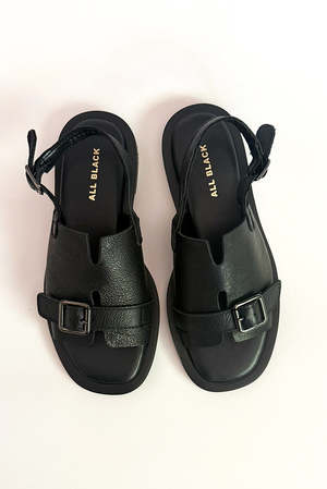 All Black Low Belt Sandal combines understated elegance with everyday comfort. Crafted from soft pebbled leather, this sandal features a distinctive square toe design that prioritizes wearability alongside style. The substantial sole provides reliable support, while the tonal buckle detail adds a refined edge. Made in Taiwan with quality construction. Available in whole sizes only and runs true to sizehalf-size wearers should order up. Size conversions: 36 = US 6, 37 = US 7, 38 = US 8, 39 = US 9, 40 = US 10.