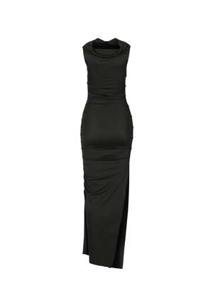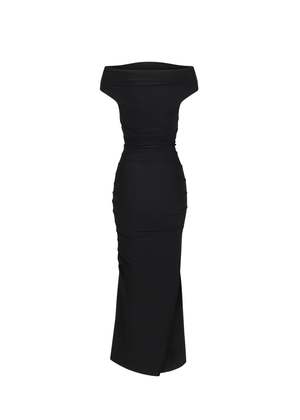 The versatile Charlie Dress can have a cowl neck, be folded over to be off-the-shoulder, or pulled down to be strapless. This maxi dress features an elasticized fabric for a secure fit and flattering shape. Features include an off-shoulder or cowl neck design, side slit, and stretch fabric. True to size. Model 1 is 5'7" wearing size XS. Model 2 is 5'7" wearing size XS.