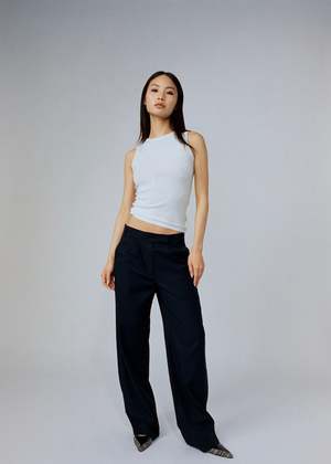 Your new go-to low-rise trousers. The Renee Pants are made from soft, drapey fabric and sit comfortably at the hips with a relaxed, baggy fit through the leg. Dress them up with fitted tops or keep it casual with a tee. Fabric: 68% Polyester, 19% Rayon, 5% Spandex, 5% Lyocell, 3% Wool. Features: - Low rise trousers - Baggy fit - Full length - Front zip fly closure Fit tip: If you are in between sizes, we recommend sizing up. Model is 5'5" wearing size S.