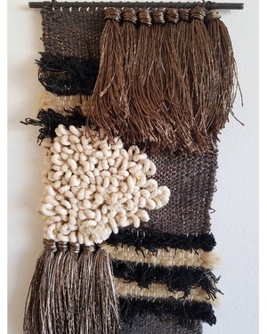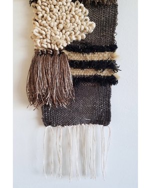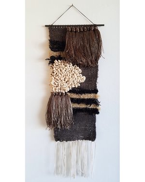Based in Los Angles, the collectsive All Roads design was founded in 2012 to combine the skill sets of the creative duo; Janelle Pietrzak who is a textile artist with a 10 year history working in fashion design, Robert Dougherty is a skilled craftsman specializing in custom fabrication metal work. Together, they combine wood, metal, stoneware and fiber to handcraft and custom installations and one of a kind objects. - Handwoven Wall hanging - Cotton, wool, viscose. hangs from a steel rod - 9" wide x 24" high - Handmade in California - One of a kind, exclusive to F&F