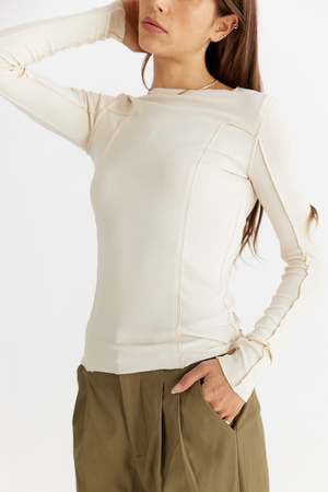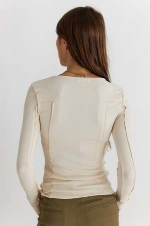 A second skin basic with a focus on subtle details - The Xio Top features a merrow edge lettuce hemline and exposed seams for added detail. Its fit to body silhouette makes this top an easy to layer piece. - 92% Rayon, 8% Spandex - Imported