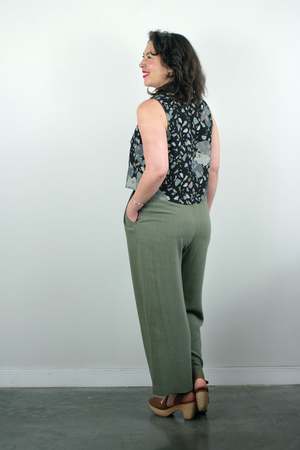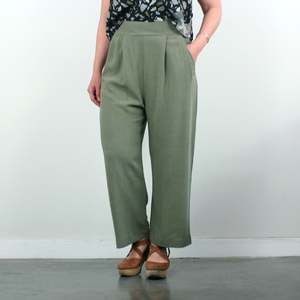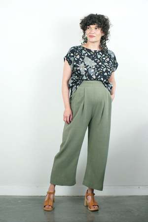 Easy cropped pants that are all about movement. They've got two pleats at the front that play up the fluid drape of the fabric AND create extra room to stretch your legs / dance/ride a bike. Plus, they've got pockets! Chika (5'6") wears the size 8. 65% polyester, 35% cupro. Wash cold and hang to dry. Made in Vancouver, BC.