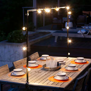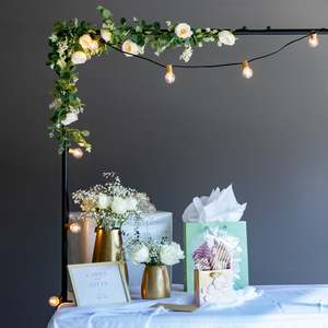 Turn any table into a party with the IYN Table Frame. Perfect for birthdays, weddings, events, picnics, camping, and more. The innovative adjustable frame fits tables 5 ft to 8 ft in length and securely clamps onto table edges 0.5 in to 2 in thick. Use indoors or outdoors to hang lights, garlands, balloons, banners, or even movie screen fabric for projectors. The powder-coated steel tubings can be assembled in minutes and is easily disassembled for storage. Eight clips are included for attaching string lights or decor. Features: - Hang string lights and decor over tables for weddings, birthdays, parties, picnics, anniversaries, tailgating, and more - Easily assembles in just minutes - Adjustable to fit tables 5 to 8 feet in length and 0.5 to 2 inches thick - Allows hanging of string lights, balloons, decorations, banners, flowers, and more - Can be used to hang movie screen fabric - Powder-coated steel tubings is durable and long lasting - Includes 8 clips for attaching string lights or decor - Designed in the USA