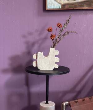 Elevate your space with this stunning, hand-crafted sculptural vase, perfect for displaying your favorite flowers or as a striking centerpiece. Mix and match with other vases from the collectsion to create a beautiful display. Hand-crafted using a slab building technique, the Ome Vase adds a touch of art to your home with its bold and artistic presence.