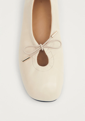 Rosalind is a stretchy ballet flat with unlined uppers threaded with a drawstring. Crafted from soft cream-colored leather, this pair features an elasticized back and flexible soles, making them easy on the feet. So comfy, you could wear them around the house - except theyre too cute to be kept indoors. - Product type: Ballet Flats - Material: Sustainable Leather - Composition: Upper: 100% Mestizo Cow Goat Leather, Lining, Insole: 100% Goat Leather, Outsole: 100% Cuerolite, Hardware : 100% Zamak Ecologic Finishing - Heel height: 1cm - Made in Spain. Designed in Barcelona.