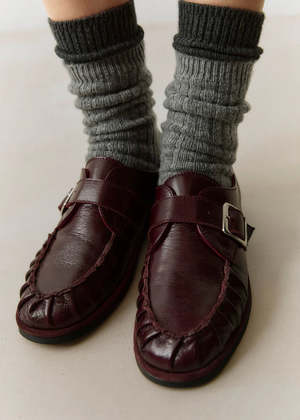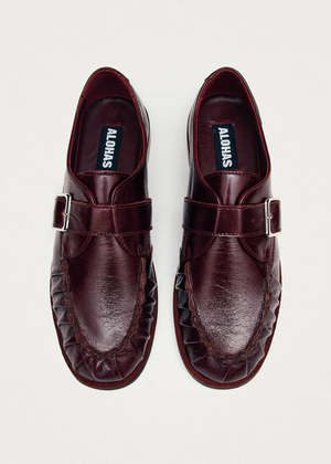 The Brandy loafers by Alohas are crafted from premium leather and feature a distinctive silver buckle for a refined touch. The design includes a uniquely crinkled finish at the toe, enhancing the classic silhouette with subtle texture. Heel height: 2cm. Designed in Barcelona and made in Portugal. All Alohas shoes are crafted from responsibly sourced leather certified by the Leather Working Group (LWG). Composition: Upper: 100% Cow Leather; Lining, Insole: 100% Goat Leather; Outsole: 100% Cuerolite; Hardware: 100% Zamak Ecologic Finishing.