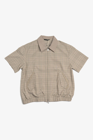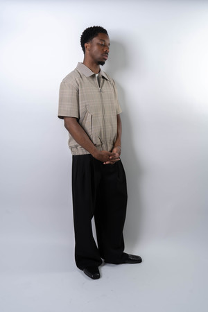 Short-sleeve shirt featuring a green-toned houndstooth weave with geometric flap pockets and an asymmetrical hem with elasticated detail. Paneled with contrasting fabrics at the collar and pocket flaps for added depth. A two-way zipper front enhances structure and versatility. Wrinkle-resistant, skin-friendly fabric. A long-term wardrobe piece designed for repeated wear. 96% Polyester, 4% Spandex Made in China Sizing - Regular fit Model is 5'11" / 154 lbs, wearing size M. Size Chart (cm) S / M / L / XL 1/2 Chest: 56 / 58 / 60 / 62 Shoulder: 50 / 52 / 54 / 56 Sleeve: 22 / 23 / 24 / 25 Length: 65 / 67 / 69 / 71 *Measurements are in cm. Manual measurement may result in a 12 cm margin of error.