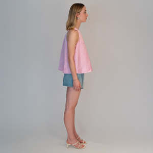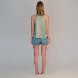 Effortlessly elevate your style with the Blurred Satin Top. Made from a luxurious blend of linen and viscose, this top features a high neck halter style and a flowy hem for a light and airy feel. Perfect for any occasion, it adds an elegant touch to your wardrobe. Composition: 65% Linen, 32% Viscose Fit: Relaxed fit; model is 510 and wears a size IT 40.