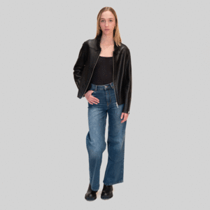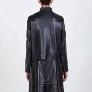 100% genuine leather cropped jacket. Shirt collar. Front opening with contrasting zip; contrasting zips at the cuffs. Composition: 100% LEATHER. Fit: True to size, slightly cropped. Model is 5'10 and wears a size IT 42 for an oversized look.