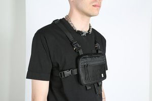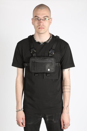The Mini Military Chest Rig from 1017 ALYX 9SM Details Smaller version of ALYX's iconic Chest Rig Harnessed chest bag with one main compartment, Two Rollercoaster buckles, and hanging loops Polyamide/Nylon construciton Made in Italy