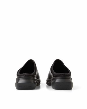 Designed by Matthew Williams, Alyx was born in 2015 and immediately gained popularity worldwide. Alyx is inspired by subcultures, translating the subversive aesthetics of this world into high quality and contemporary collectsions. The 1017ALYX9SM women's collectsion mules are made of leather and have a round toe, embossed logo2 on the back. Neoprene detail and rubber sole. Made in Italy Color: black Round toe Logo Composition: 100% Leather, 100% Rubber