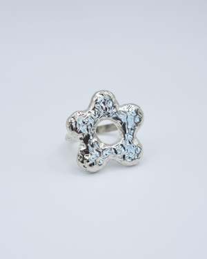 925 sterling silver. Because of the shape of this ring, the sizing is very forgivingsize down if you're a half size.