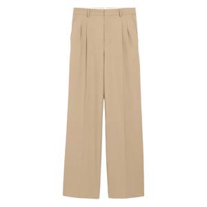Men > Clothing > Pants > Pants Beige pants with front pleats, belt loops, and a button fly.