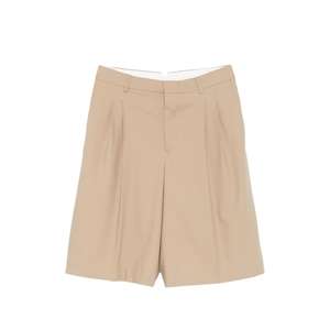 Men > Clothing > Pants > Shorts Taupe beige shorts with belt loops, a button fly, front pleats, and back buttoned pockets.