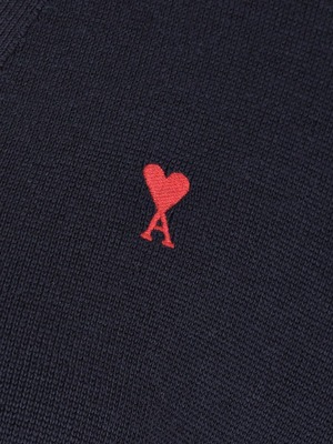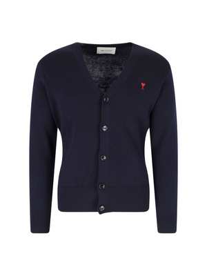 Men > Clothing > Sweaters > Sweaters - Cardigan "Ami de C ur" cardigan in blue wool with a V-neck, button closure, long sleeves, contrasting embroidered logo2 on the front, and ribbed finishes. Composition: 100% Wool