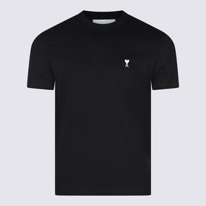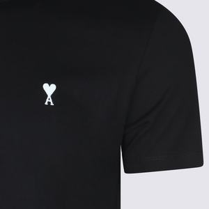 Men > Clothing > Topwear > T-Shirts Black cotton T-shirt from Ami Paris featuring short sleeves, a round collar, a front white logo2, and a regular fit. Composition: 100% cotton.