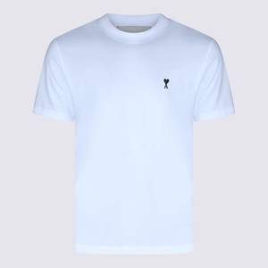Men > Clothing > Topwear > T-Shirts White cotton t-shirt from Ami Paris featuring a round collar, short sleeves, a black logo2 on the front, and a regular fit. Composition: 100% Cotton.