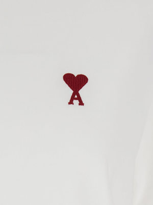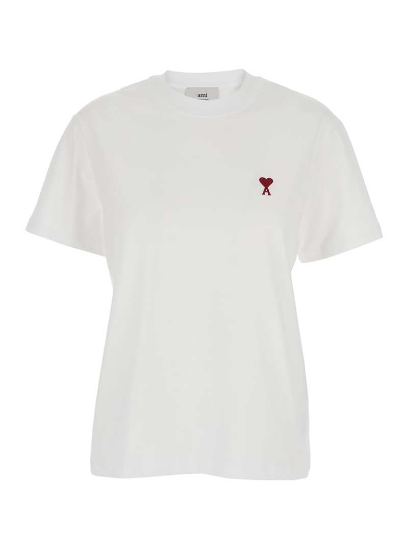 Men > Clothing > Topwear > T-Shirts White T-shirt with Ami De Coeur embroidery on the front. Crew neck and short sleeves. Straight hem with tone-on-tone stitching. Cotton. Regular fit. Composition: 100% Biologic Cotton.