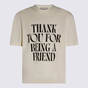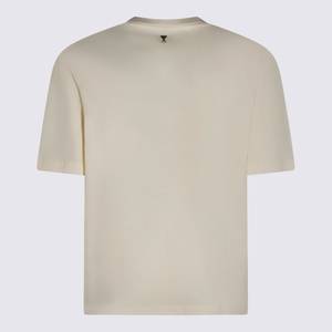 Men > Clothing > Topwear > T-Shirts Off white cotton T-shirt from Ami Alexandre Mattiussi featuring short sleeves, round collar, front print and a regular fit. Composition: 100% Cotton.