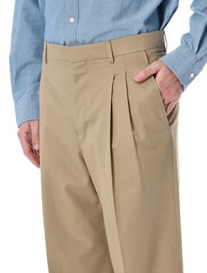 Men > Clothing > Pants > Pants Ami Paris Low-Rise Wide Cotton Trousers feature a relaxed, wide-leg silhouette with front pleats and a low-rise waist. Finished with horn buttons, belt loops, a rear V-detail, and buttoned back pockets, these trousers combine contemporary elegance with classic tailoring for versatile everyday style. - Wide-leg cut with front pleats - Low-rise waist with belt loops - Horn button front closure - Rear V-detail and buttoned back pockets Andrea is 1.90 m and wears size 42. Composition: 100% cotton.