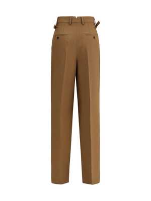 Women > Clothing > Pants & Shorts > Pants The high-waist trousers by Ami Alexandre Mattiussi are crafted from light wool twill and feature a wide fit. They have a high waist, zip and horn button closure, and buttoned back pockets. On the sides, two adjustable tabs with metal buckles engraved 'ami' allow for a customizable fit. The design is completed by the v-shaped back detail, front pleats, and front lining extending to the knees. Composition: 100% Wool