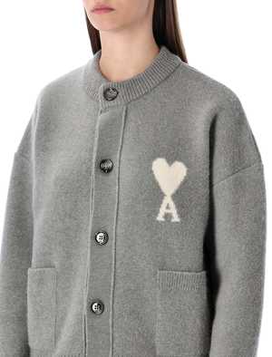 Ami Paris Alpaca Cardigan with Ami de Coeur Logo - Gris