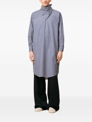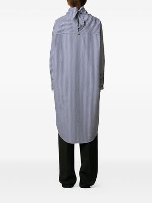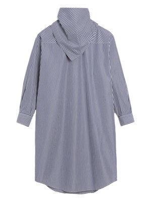 Women > Clothing > Dresses Royal blue striped bandana collar dress with buttoned cuffs and a silver-plated logo2 plaque. 100% Cotton.