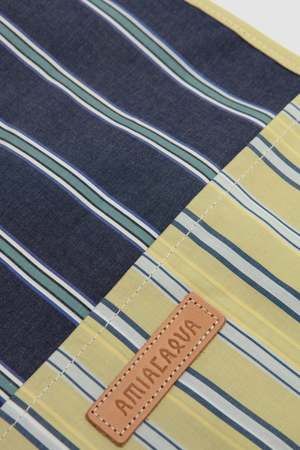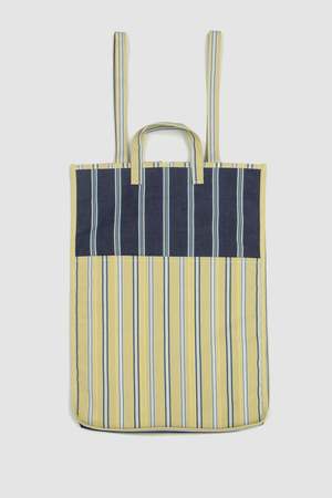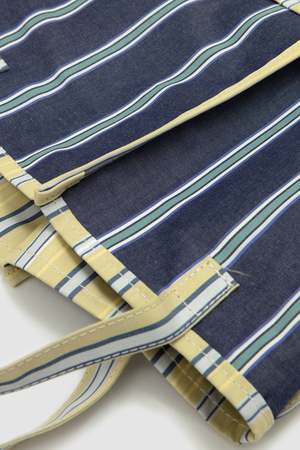 The Easy Bag L by AMIACALVA is made of cotton broadcloth stripes using yarn-dyed yarn. It is tightly woven, giving it a sturdy finish.