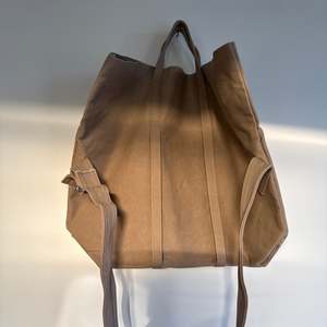 Washed canvas bag with an adjustable crossbody strap and handle. 100% Cotton Made in Japan