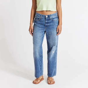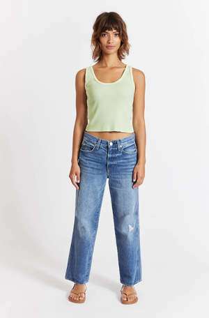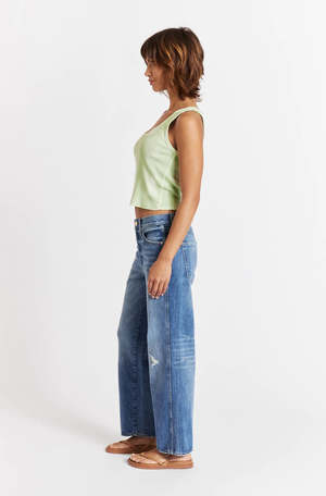 This cropped, wide straight leg is our easiest fit yet. With a mid-rise, this pair is meant to sit low on the hips for a relaxed look. Thoughtful distressing throughout. Zip fly. WASH: WARMTH FIT & MEASUREMENTS: - Inseam = 26 1/2" - Front Rise = 10 3/4" - Back Rise = 15 1/2" - Leg Opening = 17 1/2" - Measurements taken from size 27 - This style runs true to size, we recommend sizing up for the intended fit Fabric & Care: 100% Cotton Machine wash cold, and either hang dry or tumble dry low heat Made with love in Los Angeles
