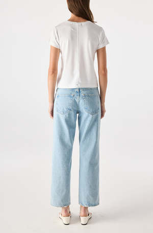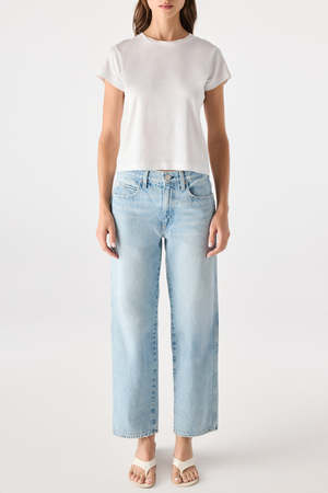 This cropped, wide straight leg is amo denim's easiest fit yet. Cut from premium rigid denim with a mid rise, this pair is meant to sit low on the hips for a relaxed look. Thoughtful distressing throughout. Denim hem. Zip fly. - Easy fit; we recommend sizing down if between sizes. - The model is 5'9" and wearing a size 25 - Inseam: 26 1/2" - Front rise: 10 3/4" - Back rise: 14 3/4" - Leg opening: 17 1/2" - 100% Cotton - Machine wash cold - Made with love in Los Angeles Type: Pants