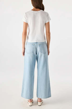 A cropped version of the brand's best-selling high-rise, wide-leg silhouette. With an easy fit through the hip and thigh, theyre your new everyday denim. Zip fly. Fits true to size. Natalia is wearing a size 25 and is 5'9". Inseam = 26 1/2" Front rise = 12" Back rise = 16" Leg opening = 23" Measurements taken from a size 27.