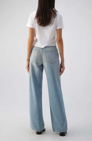 Make a statement in AMO Denim's best selling high rise, wide leg silhouette. With an easy fit through the hip and thigh and a full inseam, they're your new everyday denim. Zip fly. Fabric: 100% Cotton Machine wash cold, and either hand dry or tumble dry low heat. Made with love in Los Angeles Measurements: Product Measurements (Size 27) Inseam: 32 1/2" Front Rise: 12 1/2" Back Rise: 16 1/2" Leg Opening: 23" Model is wearing a size 25 and is 5'10".