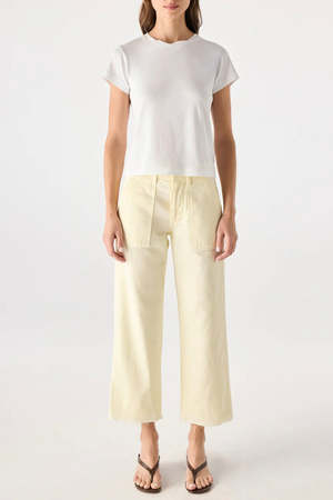Easy fit. Natalia is wearing a size 25 and is 5'9". Inseam: 26" Front rise: 11" Back rise: 15 3/4" Leg opening: 19 1/4" 75% Cotton, 25% Lenzing Lyocell. Machine wash cold. Made with love in Los Angeles.