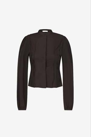 The Pintuck Slim Shirt by Amomento is a slim-fitting women's top in brown. Style code: AM26SSW01SH. Season: SS26. Collection type: Pre.