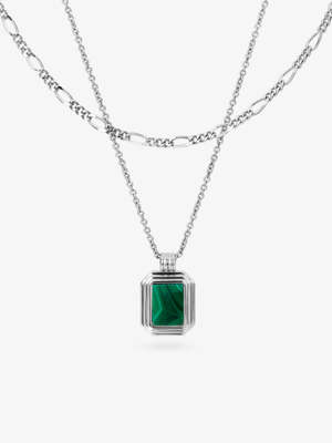 Inspire your stack with this beloved silver layered necklace set. Featuring two silver chains, one with an eye-catching malachite pendant, this set adds some cool-toned contrast to your look. Want the perfect complement? Pair this set with our Mini Abby Silver earrings for an enhanced vibe. Silver layered necklace set Includes two chains, one featuring a malachite pendant Necklaces can be worn together or apart