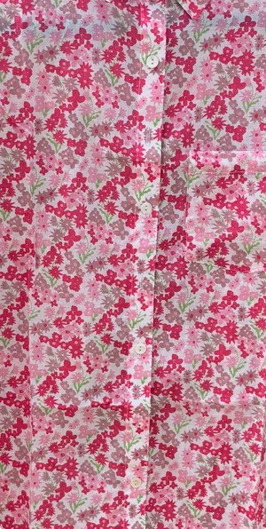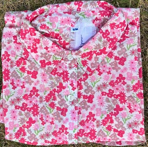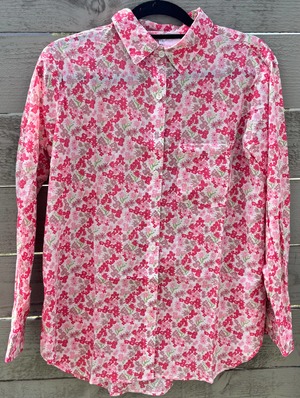The Good Boyfriend long sleeve button down shirt is crafted from 100% organic cotton (GOTS certified). It features a relaxed, modern fit with a center back box pleat and a slightly oversized silhouette. Details include a left side chest pocket, button down front, and hand-stamped print. Length from shoulder to hem: S/M 28", L/XL 30". Chest measurement: S/M 22", L/XL 24". Machine washable. Made in India.