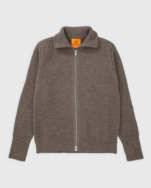 Zip cardigan knitted in full cardigan stitch. The style has a regular fit, with high collar and extended sleeve rib with thumb holes. Fully fashioned knitted and linked together. All assemblies are reinforced with bar tacks. Comes with a two-way YKK nickel-free zipper. Knitted on a 5 gauge flat knitting machine with 6 threads extra spun, pure new wool for a heavy and durable quality. - 100% Pure New wool - Made in Italy - Model is 5'11"/170 lbs. and wears size Medium