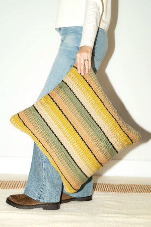Every Andes cushion is a unique masterpiece, meticulously crafted by a small community located in remote Argentina. The methods used in producing these cushions encompass numerous stages deeply rooted in Argentine heritage, from wool combings and washing, to the art of spinning, pom pom crafting, and the intricate weaving of the cushions. Each phase is made with love and dedication. The circular cushions are woven by artisans using a circular loom, while the square cushions are created through a weaving technique that intertwines yarns in a cross pattern. Size: 50 cm x 50 cm. Colour: multicolour. Fibre: Argentinian sheeps wool. Designed and made in Argentina. Our process: In the vast, open plains of the Pampas in Argentina, sheep graze freely in their herds. The wool used for these cushions is directly sourced from local shepherd families at fair prices. The shearing process is carried out manually, and it's important to note that mulesing is never practiced. Care instructions: To maintain the quality of your cushion, hand wash with cold water and lay flat to dry. Avoid using an iron. Alternatively, professional gentle dry cleaning can be used for maintenance. Please note: These cushions are crafted from 100% natural virgin wool. While every effort is made to represent the true colour of this fibre, wool, being an unprocessed material, may exhibit minor variations in colour gradation and tone.