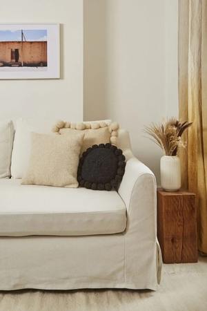 Every Andes cushion is a unique piece, meticulously crafted by a small community located in remote Argentina. The methods used in producing these cushions encompass numerous stages deeply rooted in Argentine heritage, from wool combings and washing, to spinning, pom pom crafting, and the intricate weaving of the cushions. The circular cushions are woven by artisans using a circular loom, while the square cushions are created through a weaving technique that intertwines yarns in a cross pattern. Size: 30 cm. Colour: Black. Fibre: Argentinian sheeps wool. Designed and made in Argentina. Our process: In the vast, open plains of the Pampas in Argentina, sheep graze freely in their herds. The wool used for these cushions is directly sourced from local shepherd families at fair prices. The shearing process is carried out manually, and we never engage in the practice of mulesing. Care instructions: To maintain the quality of your cushion, we recommend hand washing with cold water and laying it flat to dry. Avoid using an iron. Alternatively, professional gentle dry cleaning is recommended for maintenance. Please note: These cushions are crafted from 100% natural virgin wool. While every effort is made to represent the true colour of this fibre, wool, being an unprocessed material, may exhibit minor variations in colour gradation and tone.