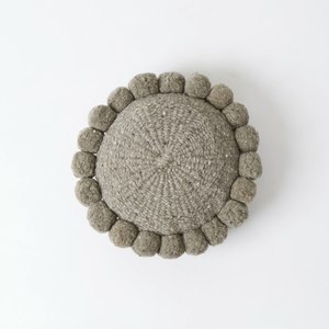 Every Andes cushion is a unique piece, meticulously crafted by a small community located in remote Argentina. The methods used in producing these cushions encompass numerous stages deeply rooted in Argentine heritage, from wool combings and washing to spinning, pom pom crafting, and the intricate weaving of the cushions. Each phase is made with care and dedication. The circular cushions are woven by artisans using a circular loom, while the square cushions are created through a weaving technique that intertwines yarns in a cross pattern. Size: 30 cm. Colour: Light grey. Fibre: Argentinian sheeps wool (100% natural virgin wool). Designed and made in Argentina. Our process: In the vast, open plains of the Pampas in Argentina, sheep graze freely in their herds. The wool used for these cushions is directly sourced from local shepherd families at fair prices. The shearing process is carried out manually, and mulesing is never practiced. Care instructions: To maintain the quality of your cushion, hand wash with cold water and lay flat to dry. Do not iron. Professional, gentle dry cleaning is also an option. Please note: These cushions are crafted from 100% natural virgin wool. While every effort is made to represent the true colour of this fibre, wool, being an unprocessed material, may exhibit minor variations in colour gradation and tone.
